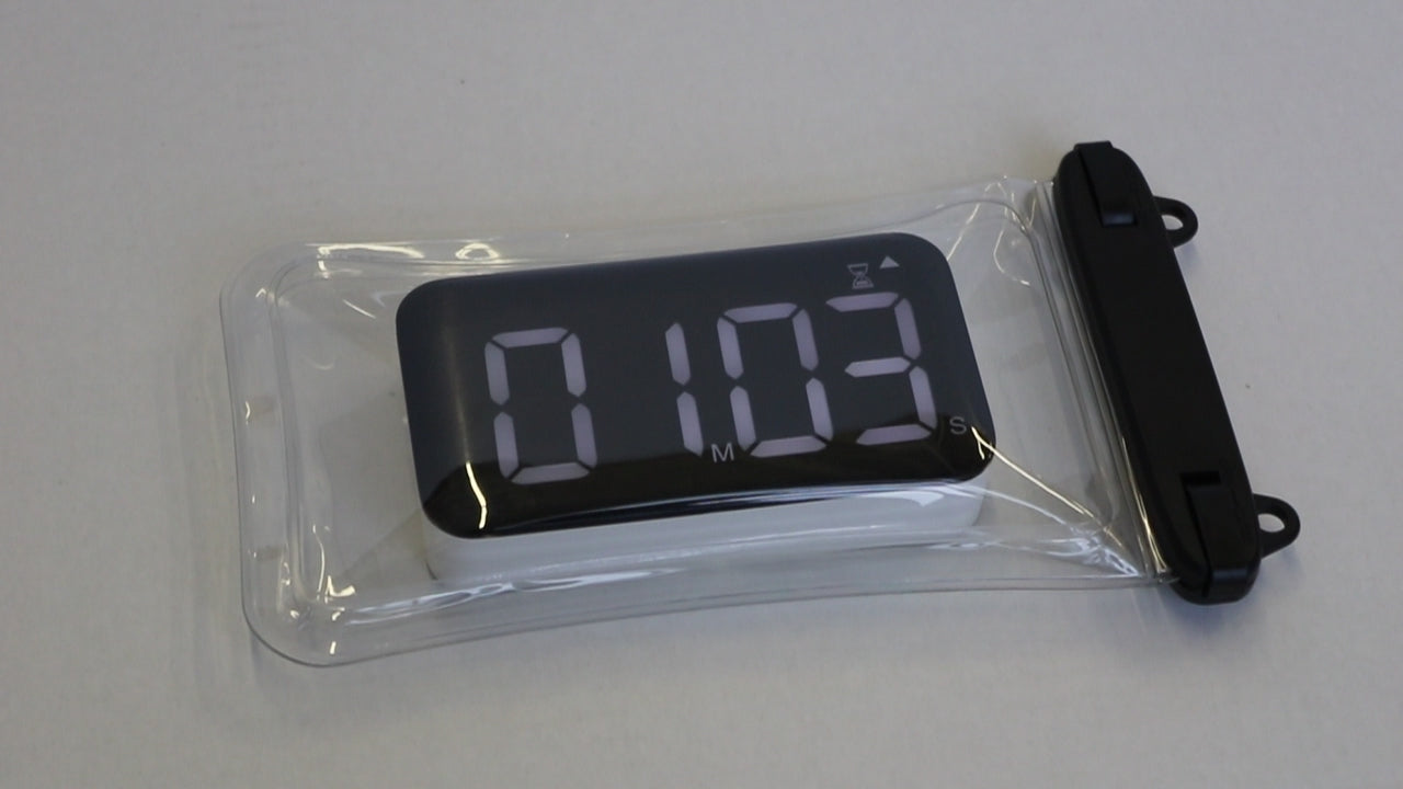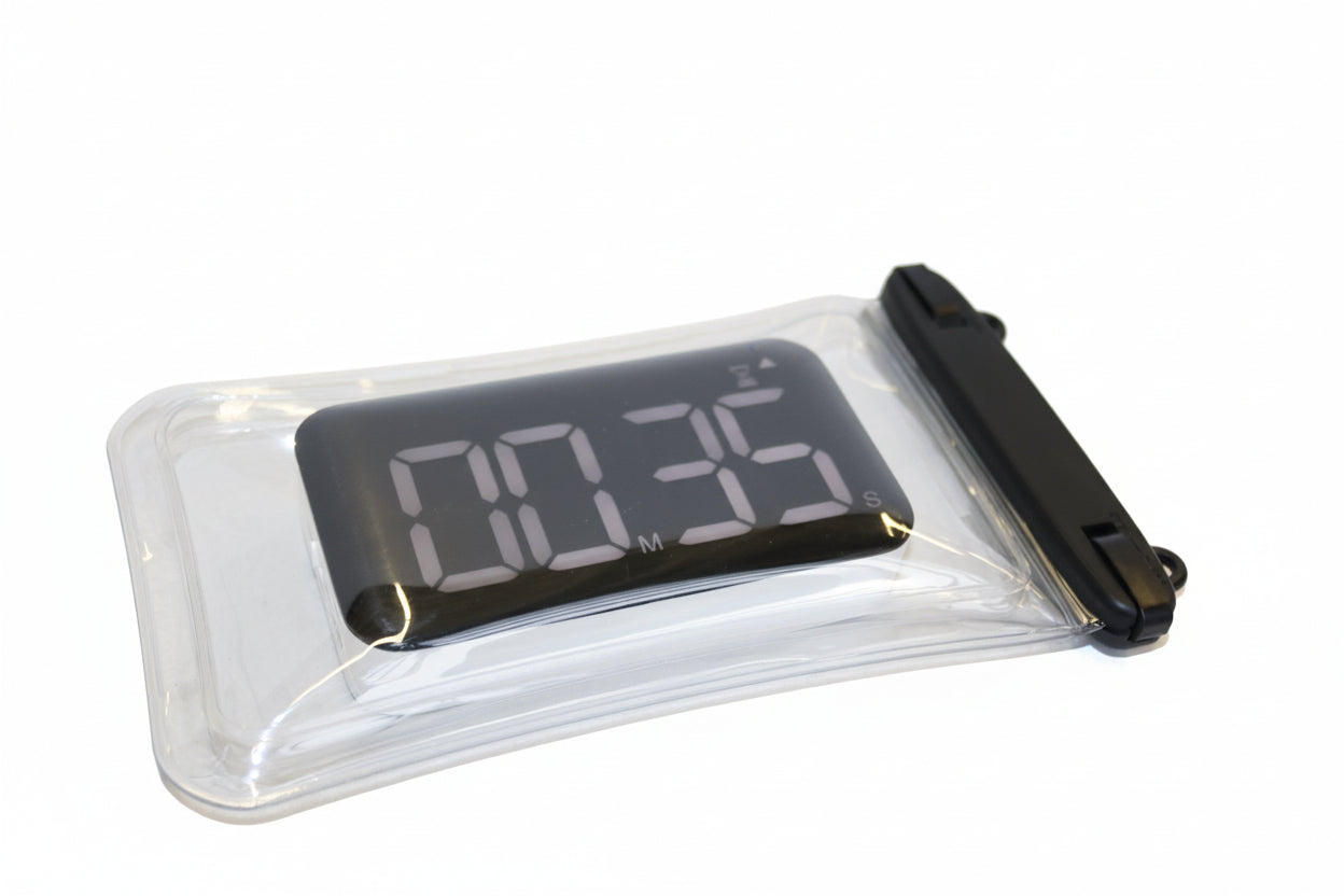 The large LED display is easy to read underwater, with adjustable brightness settings for day or evening swims. Rechargeable via USB-C, the clock eliminates the need for battery replacements and is built for repeated poolside use.